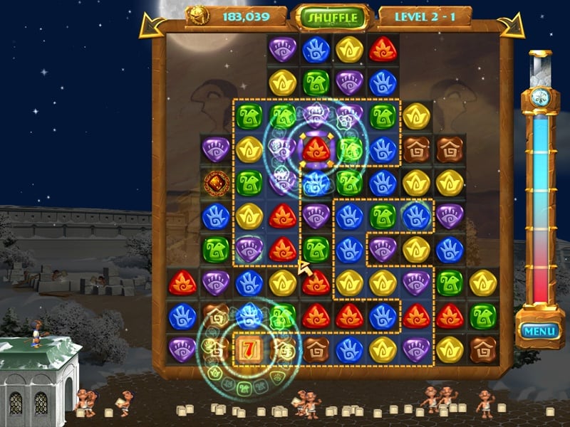 7 Wonders: Treasures of Seven - яркая головоломка, относящаяся к играм жанра три-в-ряд. Игровой процесс позволяет построить девять величественных сооружений, которые знала история! Но для этого предстоит сопоставлять руны, чтобы разрушать блоки и освобождать путь для ключа. Выставляйте разноцветные кубы в одну линию, собирая от трех и больше блоков одинакового цвета.