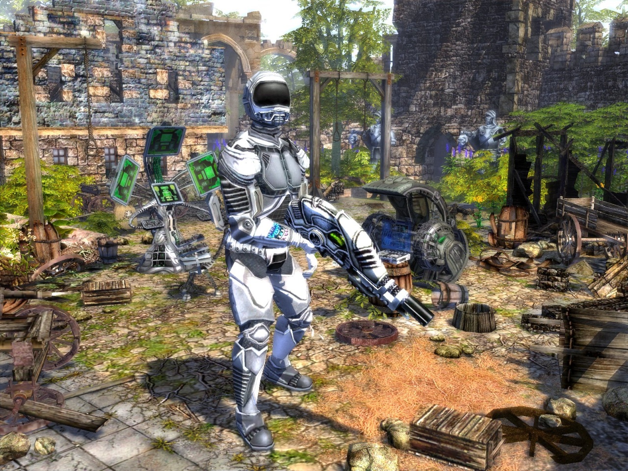Вместо магии и крутых навыков вы будете использовать фантастические технологии. Поражайте противников молниями и выживайте после многочисленных ударов мечом. Помимо дальнострельного оружия, можно воспользоваться и "божественными" клинками. Свободно перемещайтесь по игровому миру, городам и второстепенным локациям. Имеется возможность выбирать побочные квесты и общаться с NPC. Перемещаясь по населенным пунктам, можно набирать наемников и волонтеров в партию героя.