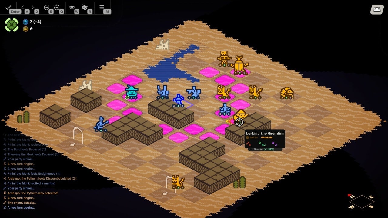 WizardChess - пошаговая стратегическая игра с элементами рогалика, где предстоит взять роль весьма необычного протагониста - беса-барда, обладающего магическими способностями. Отличительно чертой персонажа является то, что он имеет удивительные способности демагогии, но при этом никудышные боевые навыки.