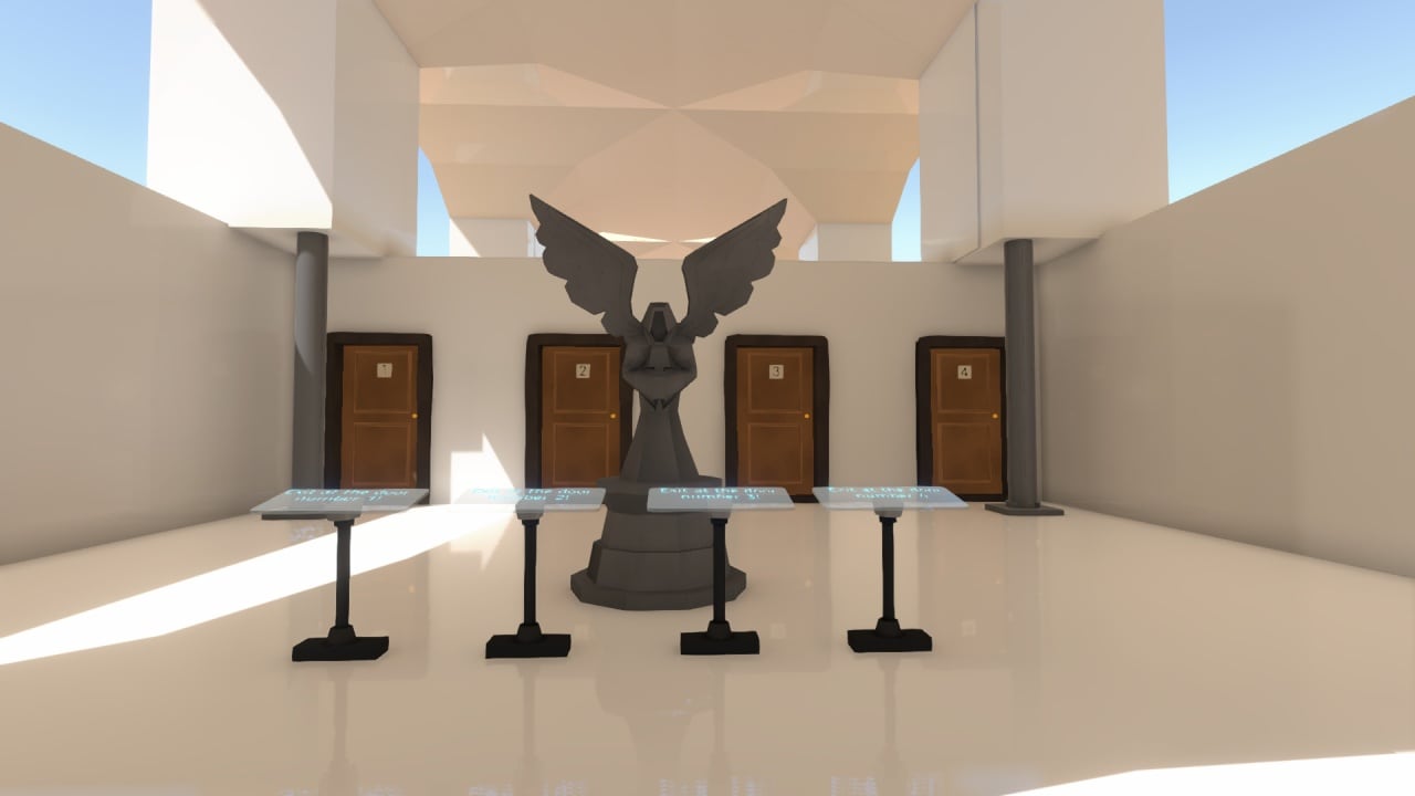 Door – это симулятор ходьбы и игра-головоломка с видом от первого лица и трехмерной низкополигональной графикой. Её главная особенность заключается в наличии процедурной генерации. 80% всех загадок создаются случайным образом. Благодаря этому рандому каждое прохождение отличается от предыдущего. Пользователь может управлять камерой, бродить в разных направлениях и частично взаимодействовать с некоторыми элементами окружения. Смысл геймплея состоит в том, чтобы открывать правильные двери и путешествовать между мирами. На выбор предоставляется обычно несколько дверей. Рядом с ними в комнатах порой встречаются подсказки.