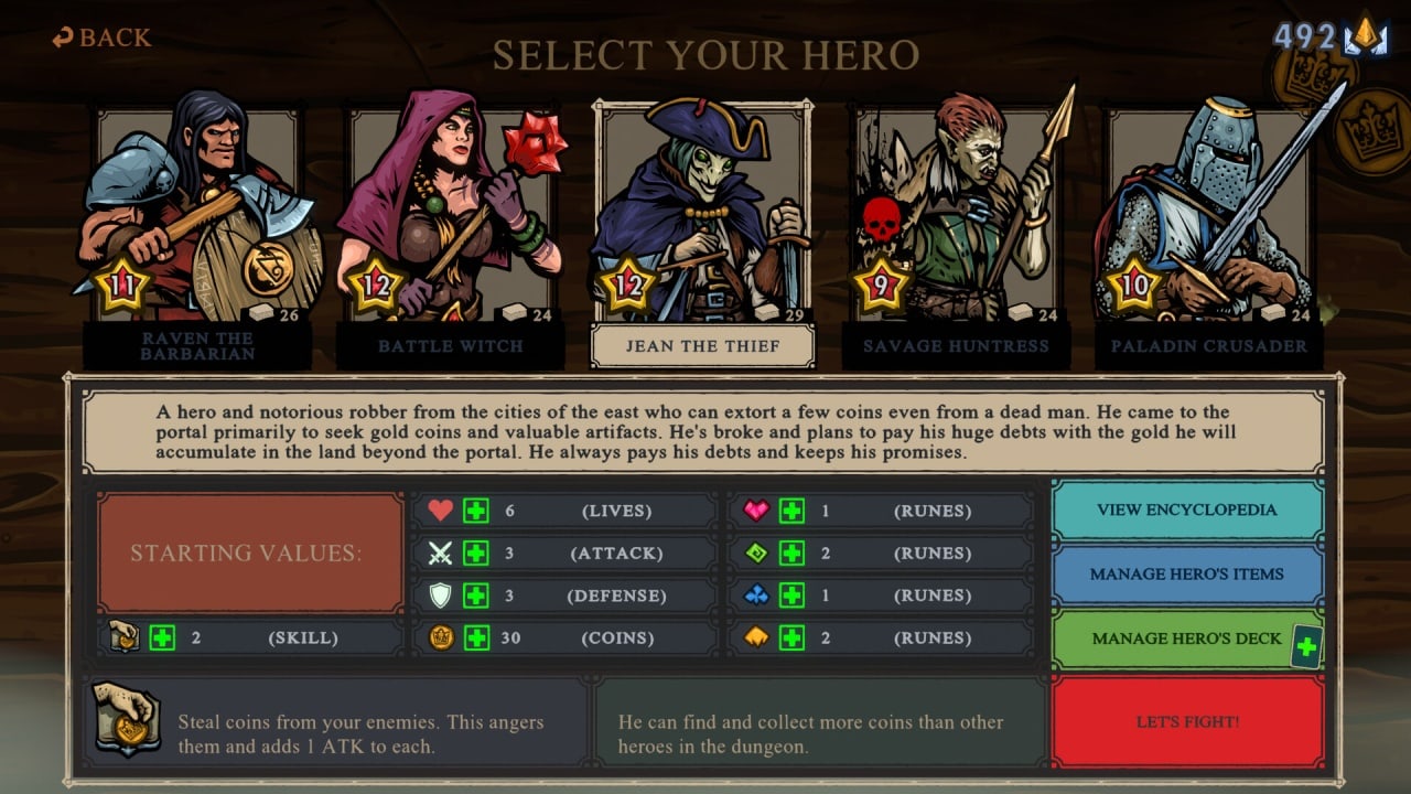 Dungeon: Faster and Deadlier – смесь ККИ, рогалика, игры-головоломки и RPG. Инди-проект рассчитан только на одиночное прохождение. Перед началом забега игроку предлагают выбрать героя. Всего их 5: боевая ведьма, охотник, паладин, варвар и вор. Они различаются внешностью, статами, умениями и биографиями. Некоторые персонажи изначально заблокированы. Доступ к ним можно получить при выполнении особых условий. После выбора бойца юзеру дают настроить ему колоду (в дальнейшем её содержимое можно улучшить). А затем игрок отправляется на карту мира. Она поделена на шестиугольники. Чтобы перейти в следующую зону, нужно победить в текущей комнате всех противников. Юзер сам может прокладывать свой маршрут, определяя дальнейший путь на развилках. По мере прохождения он находит или покупает у торговцев артефакты, а также получает предметы, что открываются навсегда и не теряются после смерти.