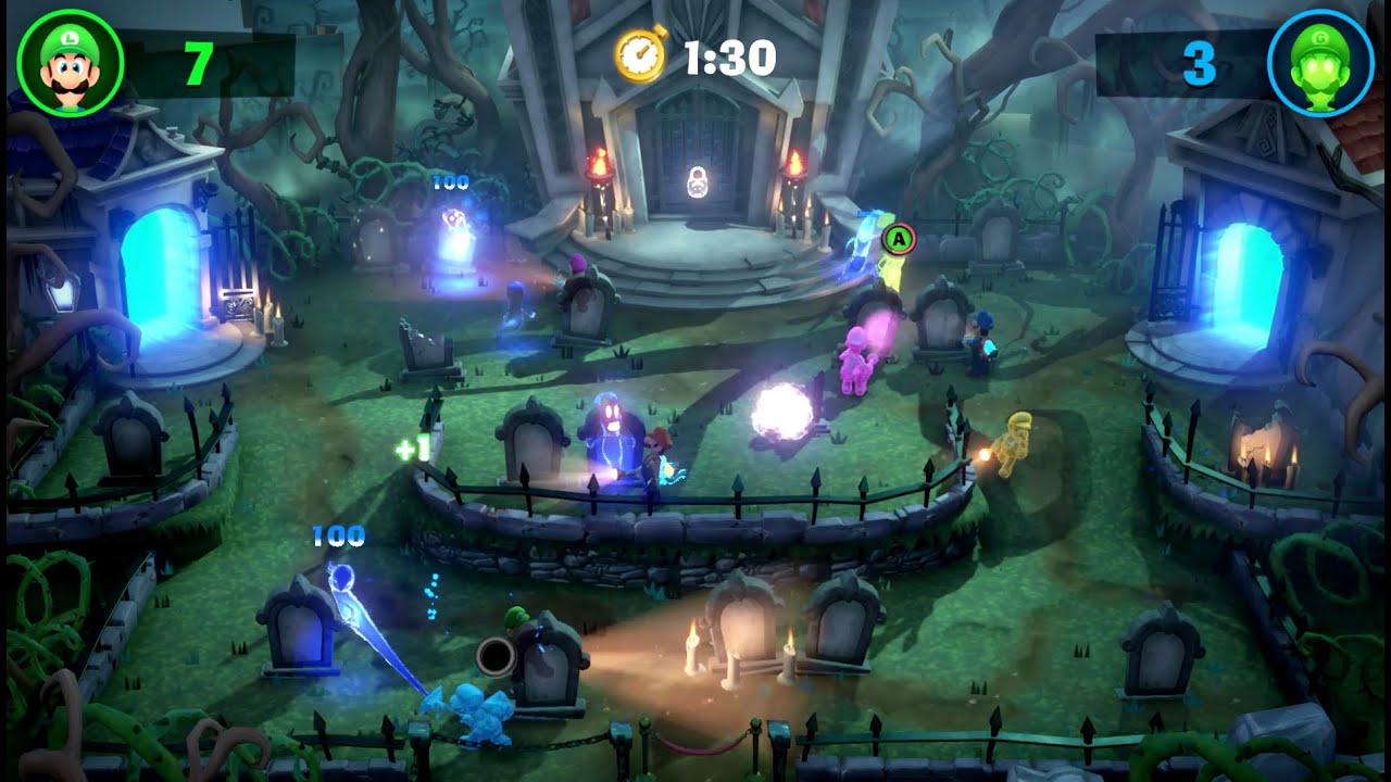 Устройство Poltergust G-OO позволяет засасывать призраков и передвигать предметы. Каждый этаж потребуется зачистить. В конце ждет сражение с уникальным боссом. Всего в игре 17 этажей. Постепенно открываются новые помещения, например оранжерея, палеонтологический музей, средневековый замок и т.д. Также необходимо собирать деньги и находить тайники, чтобы покупать улучшенное снаряжение и зарабатывать бонусные баллы.