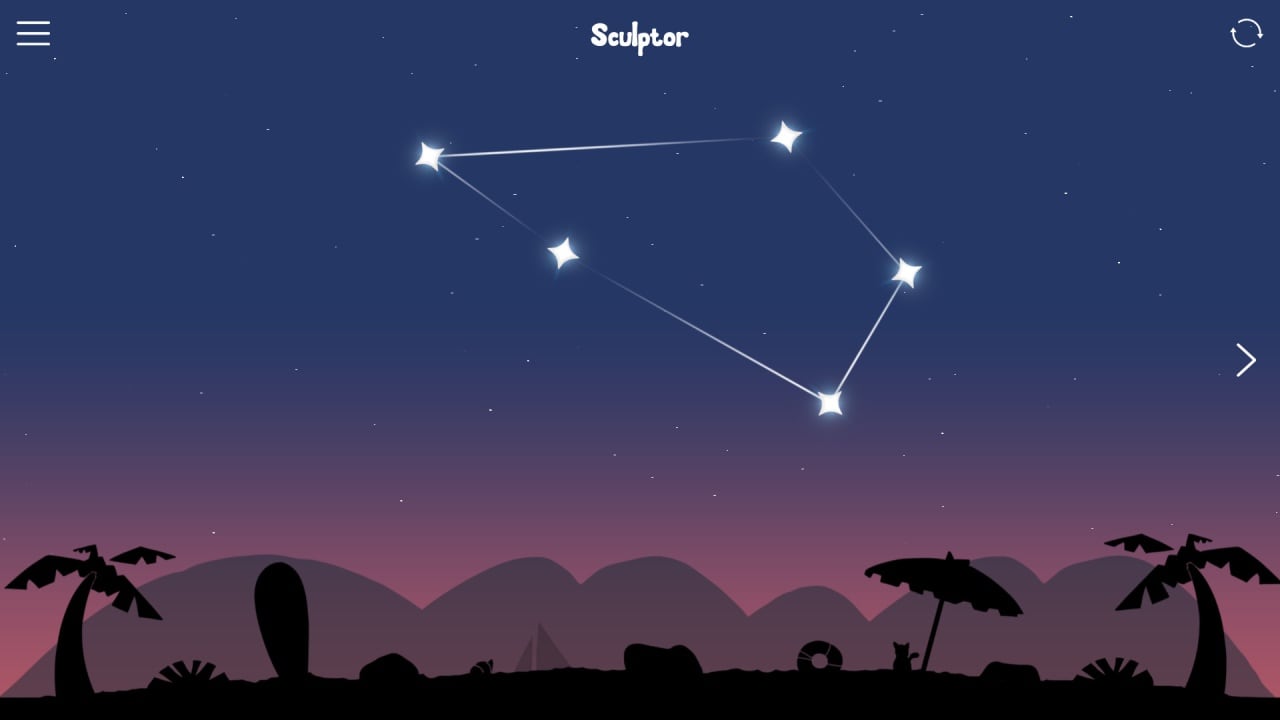 Уровни представлены пляжем, различными укромными и тихими местами. Все фоны - динамические. На экране никогда не происходит одинаковое и монотонное действие. Управление крайне интуитивное и простое. Необходимо нажимать на звезду и перемещать в правильное положение, создавая таким образом цепочку из созвездий. Постепенно на экране формируется определенная уникальная фигура из горящих звездочек. Интерфейс минималистичен и не перегружен лишними деталями.