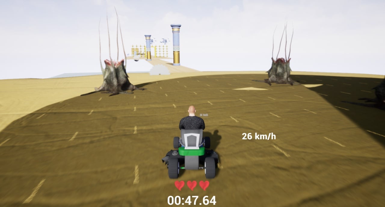 Перед геймером стоит строгое ограничение – каждый уровень нужно пройти всего за 60 секунд. Вот только на скорости 10 км это сделать невозможно. По пути игроки станут встречать бонусы-ускорения, которые нельзя пропускать, ведь они позволят разогнаться на короткое время до 40 кмчас. Съезжать с трассы, чтобы обойти ловушки также запрещено – косилка работает без остановки, а по обочинам растет трава. Заехав на нее, пользователь убьет ее, что снижает показатель экологии.
