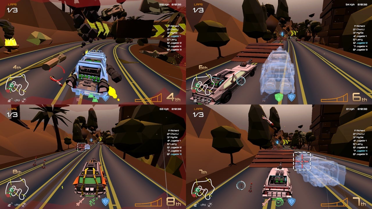 В Motor Strike: Racing Rampage пользователи могут показывать мастер-класс на 20 красочных локациях с уникальными декорациями – песчаные трасы, неоновые ночные города и полузаброшенная провинциальная местность. Автопарк насчитает 14 автомобилей, у каждого из которых неповторимый внешний вид и набор тактико-технических характеристик. Наслаждаться феерическими противостояниями можно в одиночку, так и на разделенном экране вместе с друзьями до 4 человек. Присутствует и полноценный локальный режим, где в матче уже 8 пользователей.