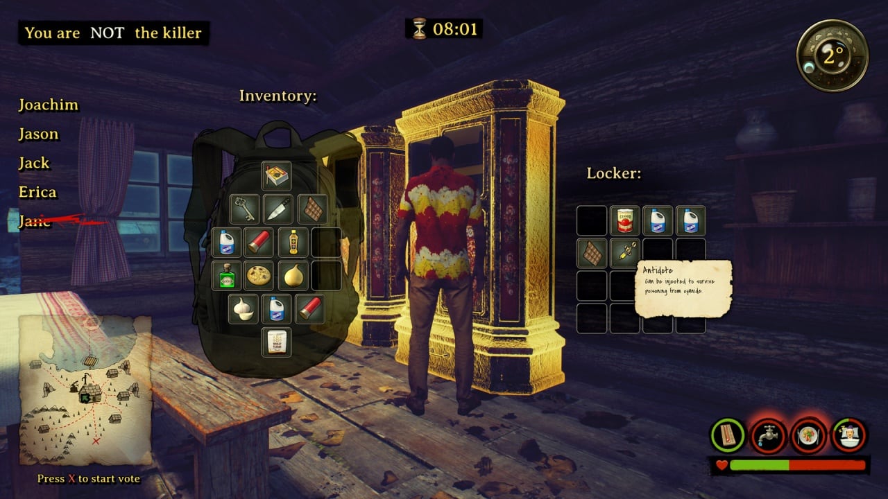 Протагонист оказался со своей командой последи норвежских горах в Killer in the cabin. Недавно произошла автокатастрофа, в которой удалось выжить не всем. Спасатели будут искать пользователя несколько дней, но есть вариант, что поиски продляться и больше. Геймерам придется объединиться, чтобы шансы на выживание возросли в несколько раз. Но один из персонажей будет до конца скрывать свою ужасную тайну. Кто-то является убийцей, которого нужно рассекретить прежде чем он приступит к делу.