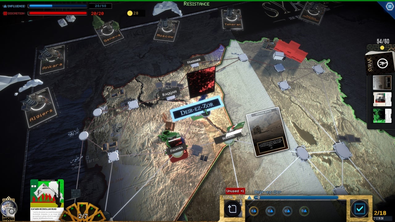 SYRAK: the War in the Middle-East – это возможность погрузиться в цифровую настолку, что продемонстрирует пользователям сражения на Ближнем Востоке. Получится взять под управление одну из фракций: Ось Сопротивления (состоит из Ирана, Сирии, России) или Организацию Западного договора (Израиль, США, повстанцы). Пользователей ожидает глубокий и проработанный функционал, что затрагивает следующие сферы: политика, шпионаж и военное дело.
