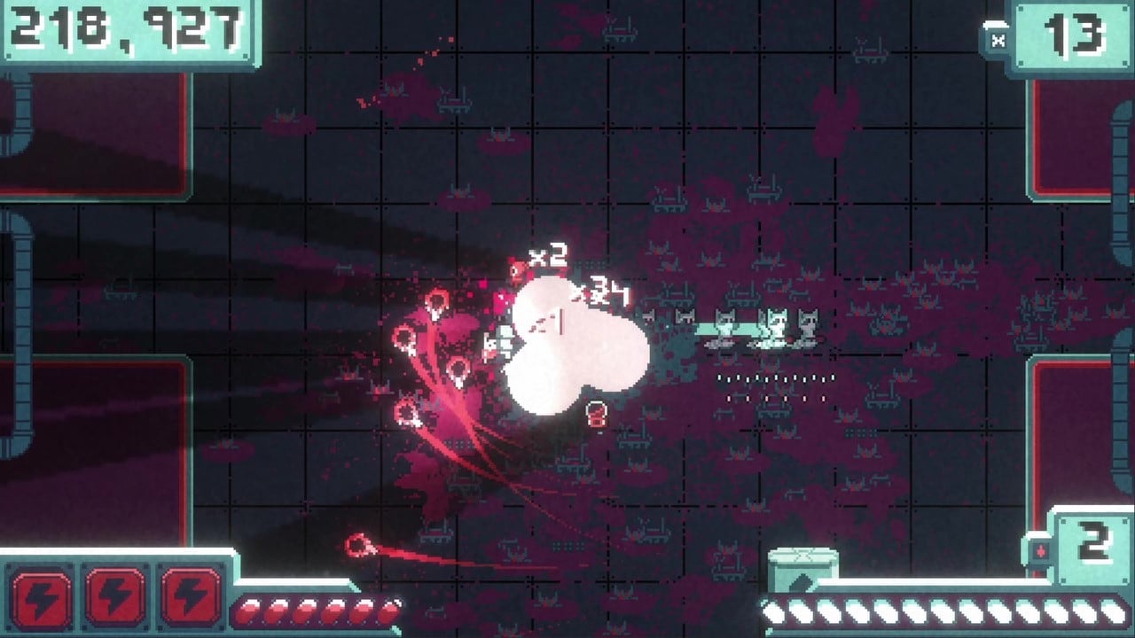 Чтобы этого избежать потребуется постоянно двигаться и уворачиваться от летящих пуль и снарядов. Все усложняется, учитывая тот факт, что противники никогда не атакуют в одиночестве. В ответ вооруженное до зубов животное также обязано практически без передышки стрелять. Соперники также погибают с одного выстрела, если не считать боссов, по которым понадобится нанести целую тонну урона. По ходу продвижения по уровню геймеру становятся доступны все более совершенные виды оружия с лучшей скорострельностью и визуальными эффектами.