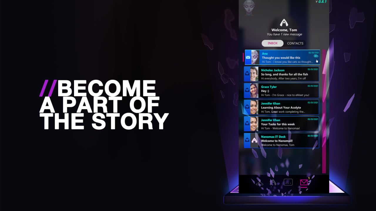 Геймерам в Acolyte предстоит погрузиться в повествовательную новеллу, где получится взять под управление личного цифрового помощника. В процессе прохождения, игроки смогут свободно беседовать и взаимодействовать с ИИ, подбирая неограниченное количество вариантов в диалогах. Игра выполнена в жанре ARG с детективной тематикой, где необходимо проводить расследования при помощи бесед с персонажем. Юзеры получают возможность стать сотрудником Nanomax, который занимается технологичным стартапом.