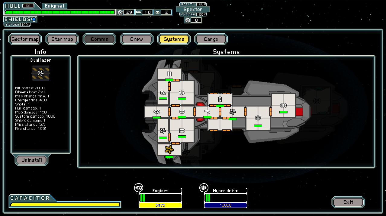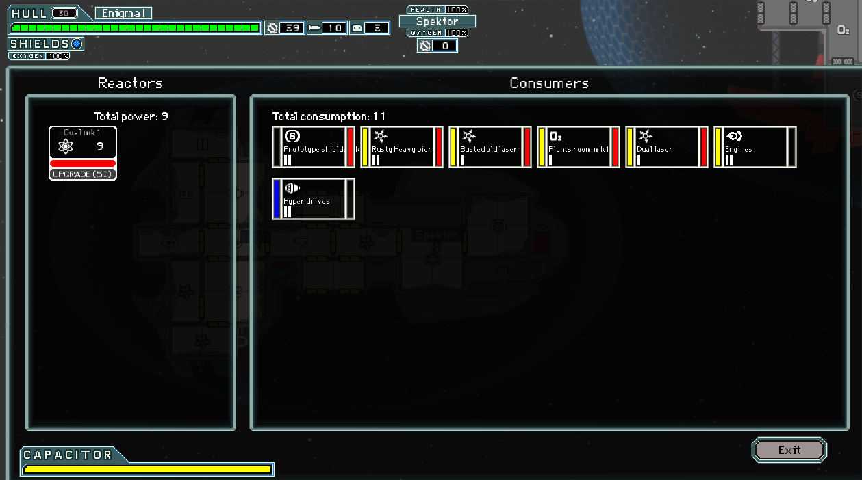 Tachyon – это космический рогалик с элементами стратегии. Мы управляем звездолетом с видом сверху, путешествуем по галактике, сражаемся с вражеским транспортом, чиним свой летательный аппарат. Корабль поделен на отсеки. Каждое помещение отвечает за какую-нибудь функцию: работу двигателя, оружия, или щитов, подачу кислорода и всё в таком духе.