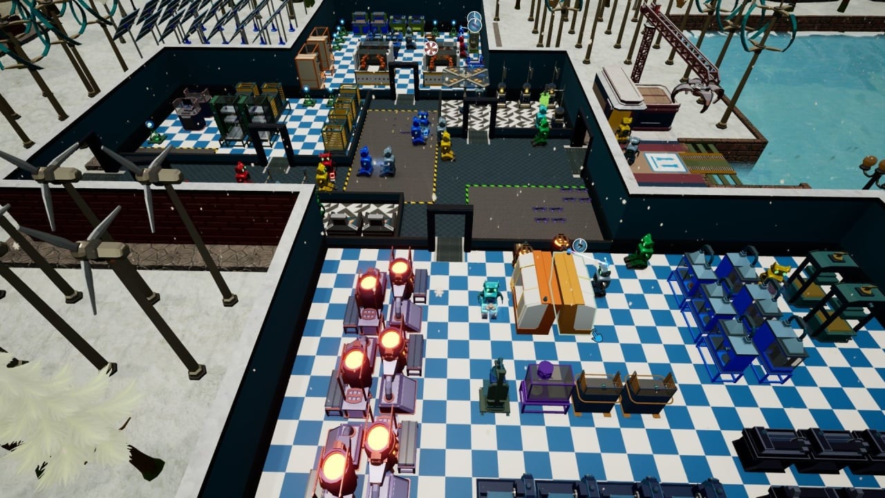 - Возможность нанять роботов, что приезжают на фабрику разными способами: на лодке, автобусом, вагонеткой или прилетая на парашюте.