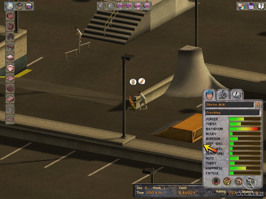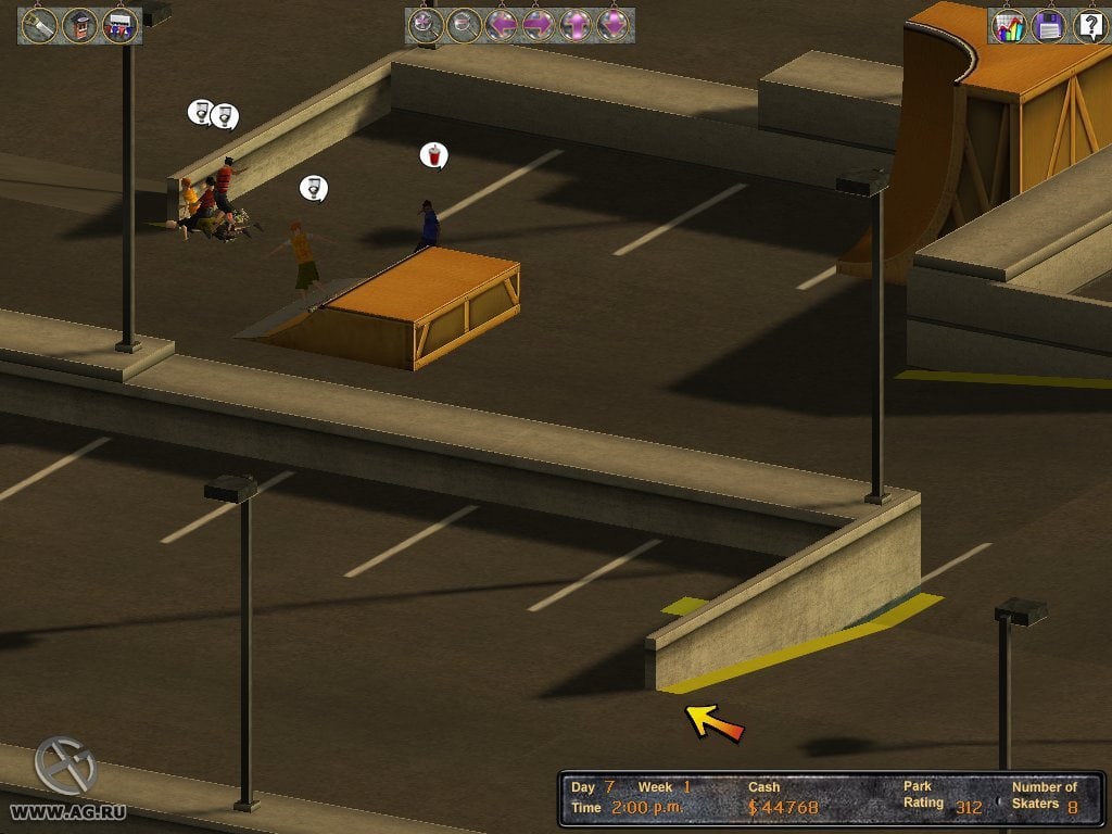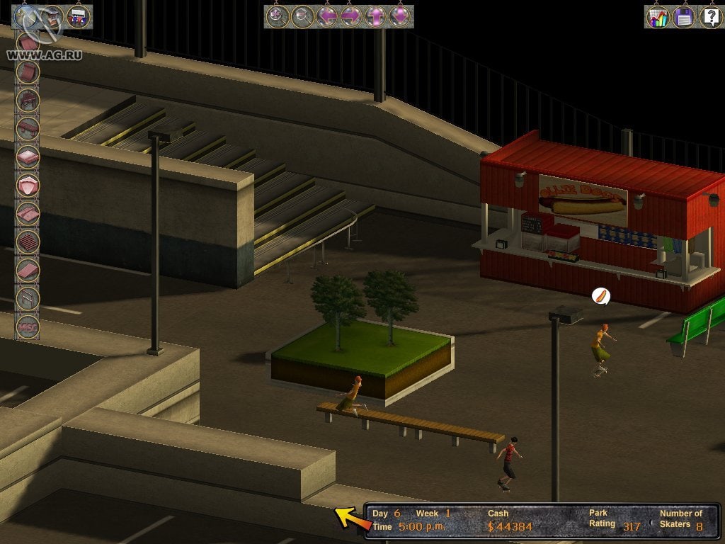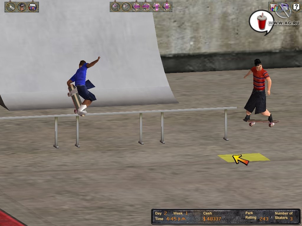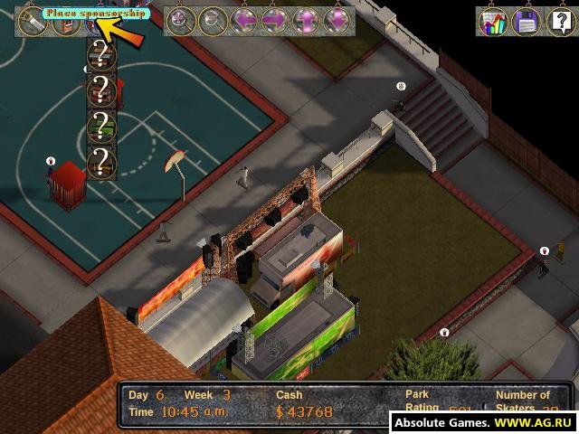 В Ultimate Skateboard Park Tycoon можно найти спонсора. Именно он будет оплачивать все хотелки, а еще решать вопросы по благоустройству площадки. Нужно запастись терпением, чтобы заработать авторитет среди других предпринимателей. Можно устанавливать новые дорожки или платформы для трюков, повышать заинтересованность скейтеров. Но важно помнить, что спорт может стать опасным. Некоторые посетители напрочь забывают про технику безопасности. А в случае травмы скейт-парк потеряет доверие. Необходимо следить за состоянием местности, а также за каждым персом отдельно.