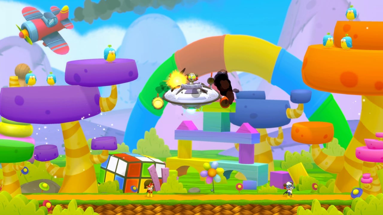 - Сражения с боссами локаций и посещение миров игрушек, пиратов, динозавров и пришельцев, где выйдет оседлать Шелдона или отыскать "яйца с сюрпризами".