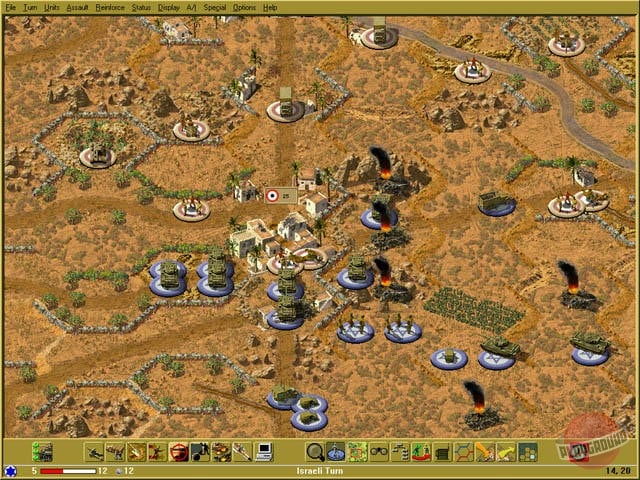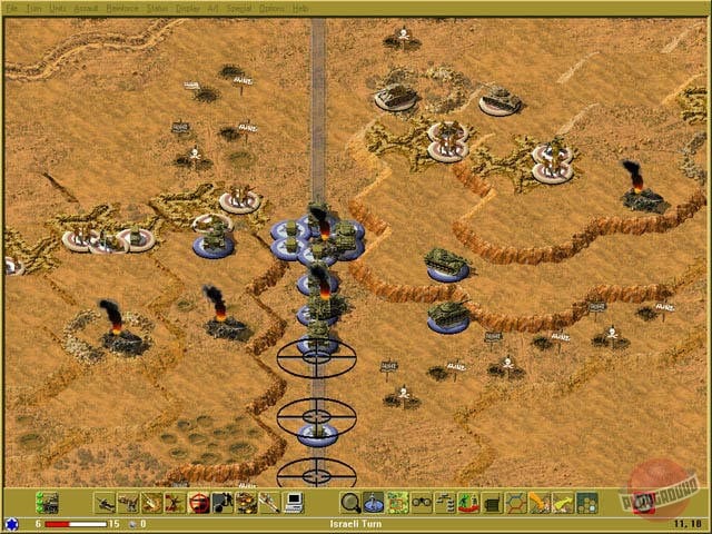 При выборе миссии в Divided Ground Middle East Conflict 1948-1973 система предоставляет краткую сводку и описание тех действий, которыми будут заниматься пользователи (уничтожение противника в определенном количестве, осада территории, контроль стратегически важных пунктов и прочее). Более того, здесь даже указано точное количество ходов, отведенное для прохождения конкретного сегмента. Уже непосредственно в бою карта разделена на несколько участков, которые обозначены дорогами и маршрутами. На них будет располагаться техника, находящаяся как под контролем геймеров, так и под контролем искусственного интеллекта (враги). В правой стороне экрана, в отдельных иконках, находятся обозначения юнитов со всеми характеристиками (прочность, вооружение и цена). Поэтому, если в строю имеются более мощные образцы, их можно бросать на передовую в первую очередь. Важно понимать, что противник также ограничен в количестве ходов, и если геймеры получают хотя бы малейшее преимущество, то его следует тут же закрепить.
