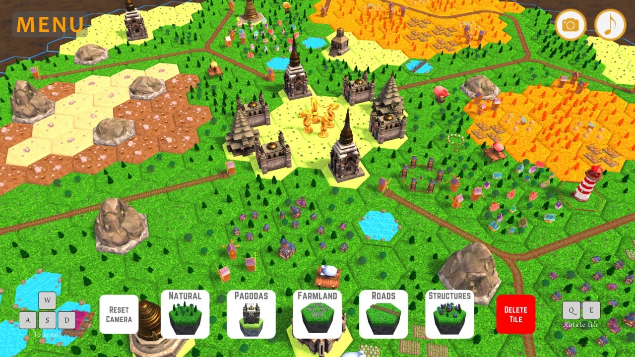 - Создавать красивые поселения, выставляя желаемые сооружения на игровом поле.