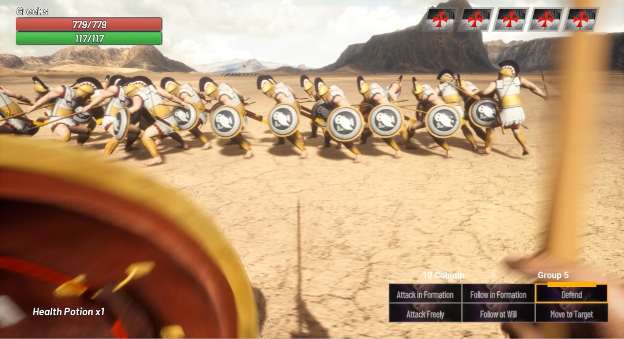 Главной задачей становится победа в моделируемых матчах, где пользователям предстоит руководить войсками на поле боя и самостоятельно участвовать в сражениях. Герой сможет наносить удары, совершать блоки щитом и контратаковать противников. Игроки смогут создавать следующие формации для ударной группы: круг, квадрат, клин или линейный строй, чтобы опробовать уникальные тактические маневры или подобрать желаемый стиль прохождения.