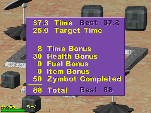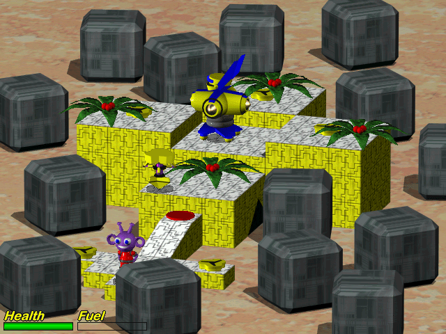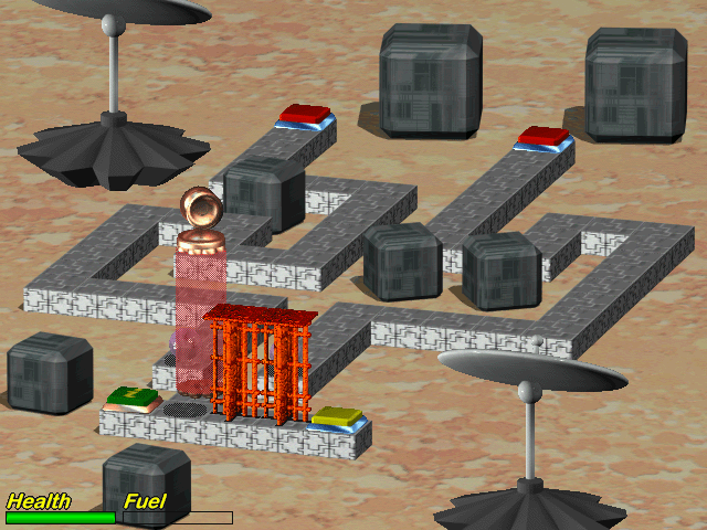 Каждая локация в Gubble 2 представляет собой отдельный сегмент пространства, наполненный препятствиями. Это могут быть вращающиеся колонны с шипами, выемки с кольями, а также несколько других штук. Чтобы миновать их, порой достаточно просто сделать движение в сторону. Но есть ситуации, когда необходимо использовать вспомогательные предметы. Например, подвинуть платформу для подъема на возвышенность, или подобрать молот, чтобы ударить по кнопке и открыть себе проход дальше. После завершения очередного сегмента происходит подсчет набранных очков. В основном этот показатель зависит от потраченного времени, ведь чем быстрее удается завершить прохождение, тем больше пунктов получит пользователь. Показатель сложности в целом отсутствует - определить, насколько трудным является тот или иной сегмент можно по количеству препятствий.