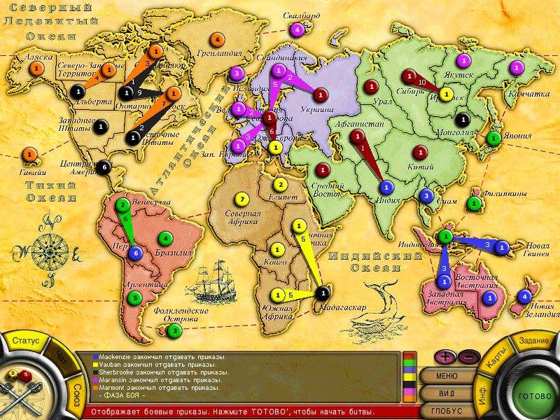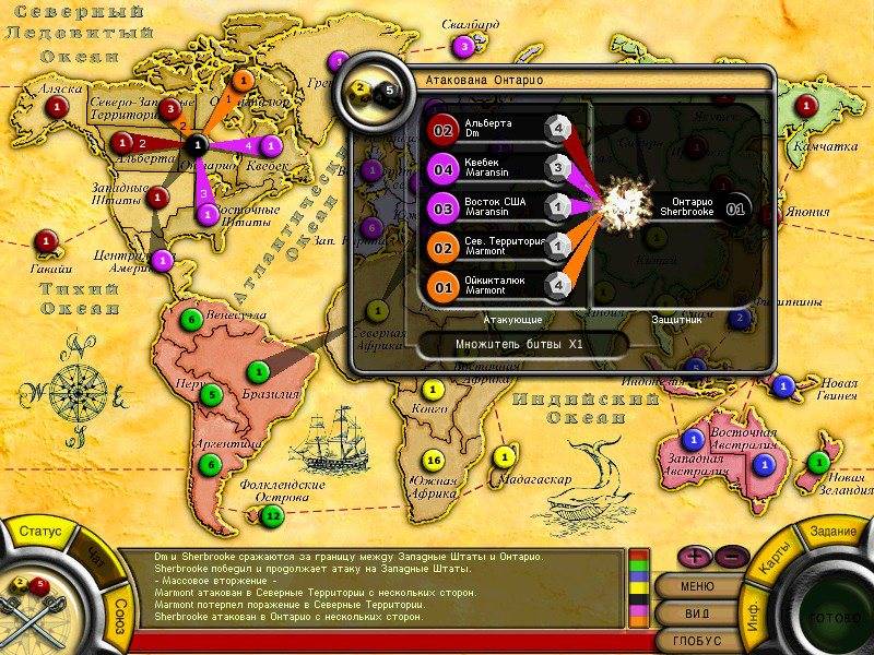 Переходя в боевой режим, можно перемещаться по границам только один раз. Однако предоставляется функция Быстрая атака, дающая возможность быстро перебросить определенное количество солдат на соседнюю территорию. В механики игры входит бросок кубиков. Если используется три армии во время наступления, то игрок бросает три кубика. Если атакующая сторона включает более 30 солдат, игрок получает черные кости, армия из 5 и меньше юнитов использует белый кубик. В зависимости от рангов используются желтые, красные и другие виды костей.