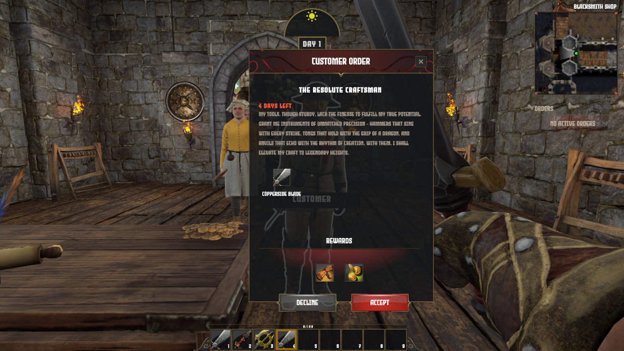 Medieval Crafter: Blacksmith предлагает вступить в роль искусного кузнеца в средневековом фэнтезийном мире. Она вращается вокруг создания оружия и доспехов, но здесь есть нечто большее, чем просто ковка инструментов. Юзеру предстоит погрузиться в горное дело, исследовать шахты, чтобы найти руду и драгоценные камни, а затем создать из этих ресурсов предметы. Как кузнец, вы постоянно сталкиваетесь с потоком заказов от различных жителей деревни, которым требуется различное оборудование для их нужд.