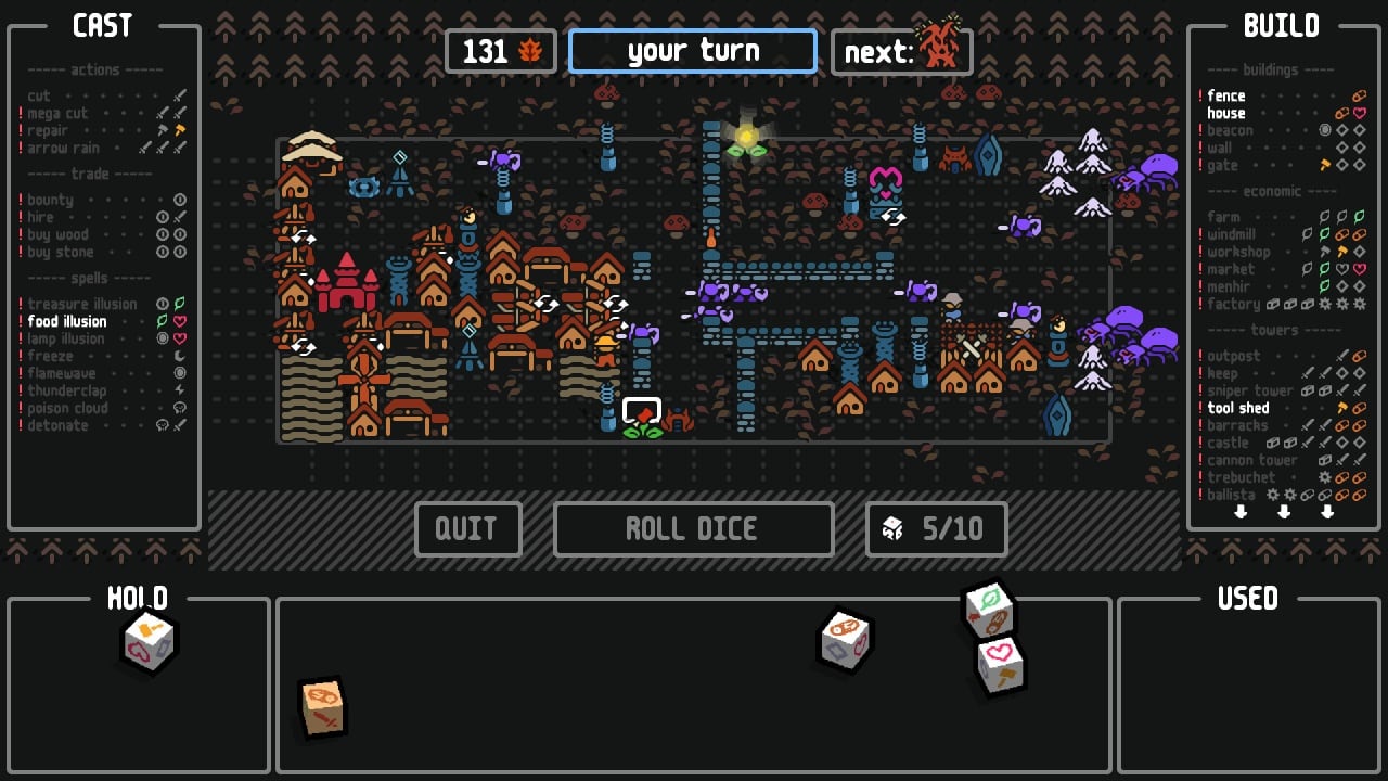 Защита города в Luckitown погружает пользователей в атмосферный мир темного фэнтези, где приходится участвовать в пошаговых битвах. Игра представляет собой стратегический tower defense, где происходящие события зависят от броска кубиков. От выпавших значений будет показываться успех или неудача при совершении какого-либо действия, среди которых: строительство зданий, произношение заклинаний и развитие обороны, расставляя желаемые объекты и башенки на двухмерной карте.
