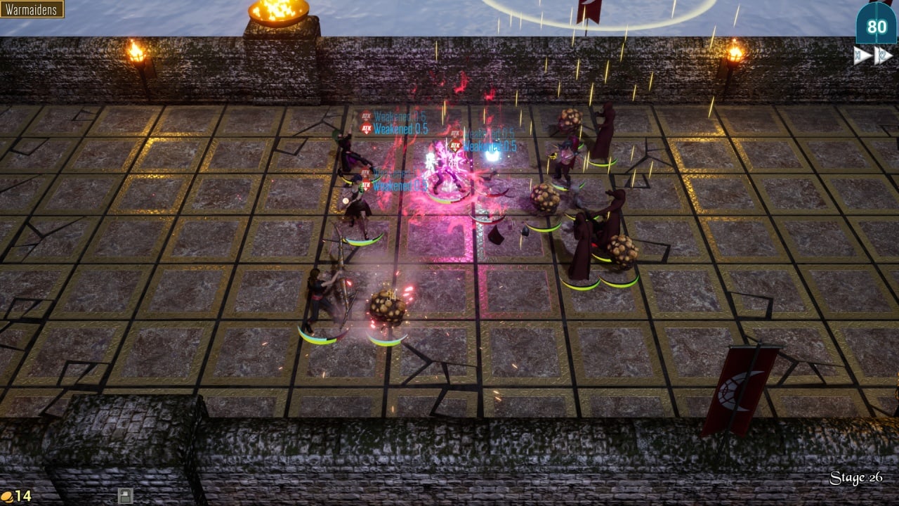 Протагонистки в Элвен Вармэйден будут отбиваться от толп противников, что нападают на столицу государства. Каждая девушка сможет опробовать более чем 30 видов разнообразного оружия, такого как мечи, копья, лук со стрелами или волшебные посохи, позволяющие колдовать и создавать атакующие заклинания. Воительницы будут изучать пассивные черты под конкретные виды снаряжения, а также смогут улучшать характеристики. В битвах выйдет накладывать баффы или повышать здоровье при помощи магии.