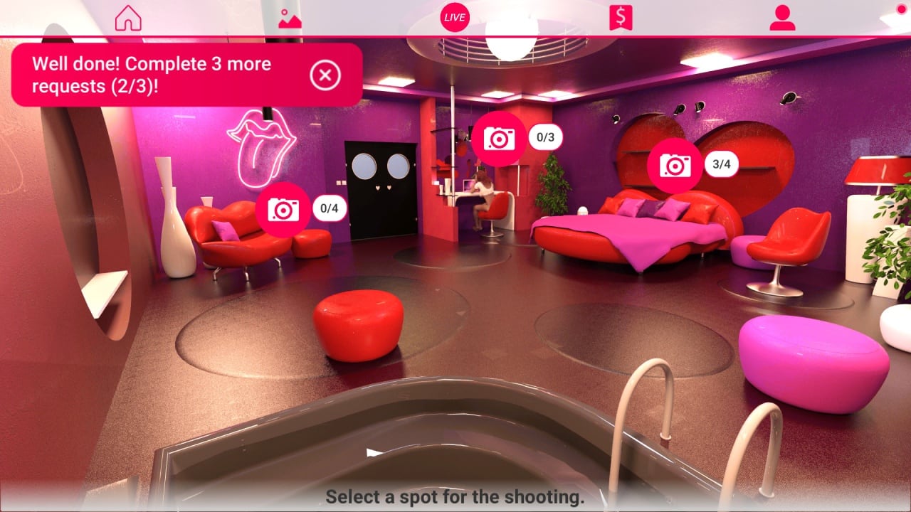 Игрокам предстоит заниматься обустройством помещения, наполняя комнату для развлечений различной мебелью и вещами, такими как телевизор, кресло для отдыха, джакузи и т.п. Выйдет покупать разнообразные пошлые наряды для красотки, чтобы она становилась привлекательнее в глазах фанатов. Нужно зарабатывать деньги на запросах и подписках, которые получится вложить в расширение бизнеса. Юзеры поучаствуют в 6 мини-играх, представляющих собой сексуальные сцены в локациях внутри помещения.