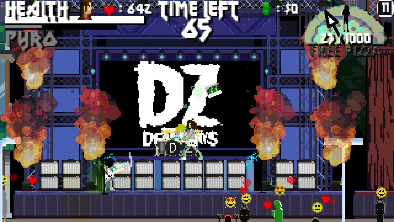 Игра позволяет пройти одиночную сюжетную кампанию или опробовать многопользовательский режим, где можно совместно с другим геймером проходить уровни. В таком случае, получится ходить по двум краям сцены и привлекать больше внимания, как положительного, так и отрицательного. От качества исполнения песен будет зависеть итоговый результат и поддержка от публики, что может вести себя агрессивно по отношению к музыкантам.