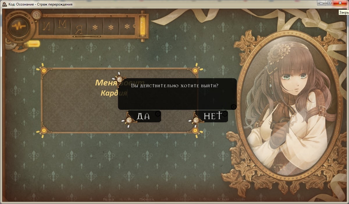 В процессе путешествий по вселенной Код: Осознание – Страж Перерождения, протагонистка будет сталкиваться с разнообразными жителями, проживающими на территории викторианского Лондона. Мир выполнен в стилистике стимпанка, где получится повстречать таких персонажей как Арсен Люпин, Ван Хельсинг и других. Игрокам необходимо наблюдать за развитием сюжетной истории, читая диалоги между персонажами от лица Кардии и подбирая варианты ответов, что сказываются на взаимоотношениях персонажей.