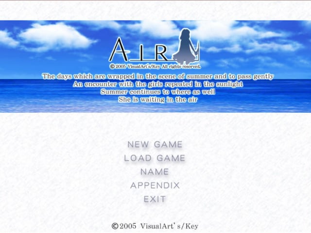 Air Standard Edition – это визуальная новелла, которая повествует про паренька по имени Камисаки Юкито. Главный герой получает от мамы подарок в виде куклы, а также загадочную просьбу, в которой говорится про спасение девочки на небе. Через время, юноша становится взрослым и отправляется в самостоятельное путешествие, стараясь отыскать потерянную девчушку. Игра Воздух позволяет осуществлять выборы в процессе прохождения, что сказываются на развитии дальнейших событий.