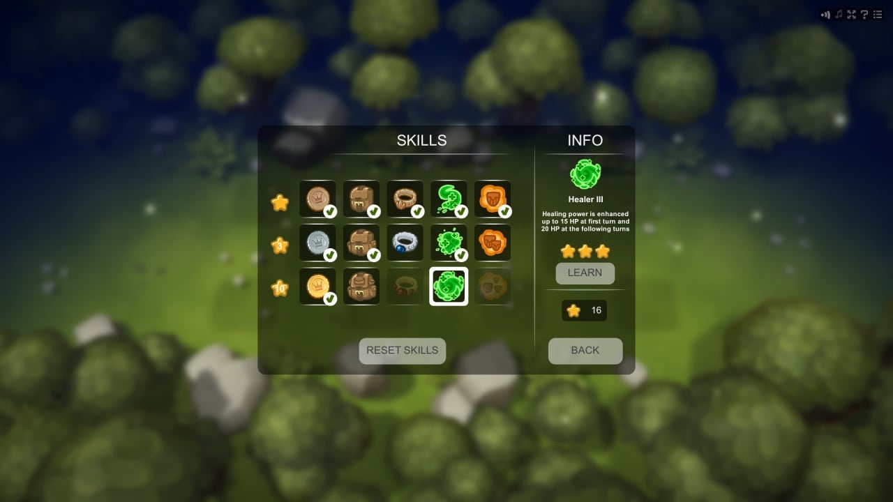 - Прокачка характеристик, атрибутов и скиллов у каждого члена отряда.