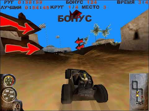 Объектами для взаимодействия выступают различные руины, цистерны, бочки, деревья и т.п. Получая бонусные очки, можно по нажатию клавиши ускорения получить временный прирост скорости. Закись азота восполняется после того, как гонщик собьет различный хлам на треке. При ускорении машина становится менее маневренной. Локациями выступают такие трассы, как подножие вулкана, пляж, ледяное озеро и т.п. Чтобы продвигаться дальше по турнирной лестнице, требуется занимать места в первой тройке. Также могут быть дополнительные условия, например, закончить трассу в отведенное время.