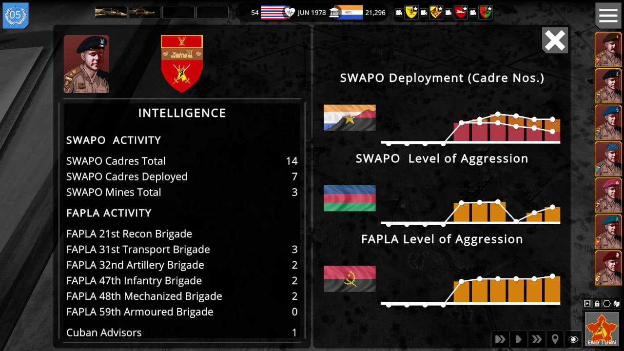 Пользователи должны управлять поддержкой военных действий на родине, обеспечивая правительству необходимую поддержку для продолжения операций. Игра подчеркивает важность сохранения международной поддержки, особенно со стороны Организации Объединенных Наций, поскольку ее потеря может иметь серьезные последствия. Реалистичное изображение пограничной войны в Южной Африке позволяет геймерам получить полное представление о проблемах, с которыми сталкивались военные командиры в этот период.