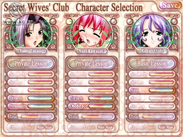Secret Wives Club – это интерактивная визуальная новелла, позволяющая погрузиться в мир эротических наслаждений, выполненных в анимешном стиле. Игра делает упор на классические хентай элементы, где сюжетная линия занимает далеко не центральное место, позволяя геймерам отправиться в интимные приключения с дамами от лица протагониста. Главным героем выступает парень, которого наняли три замужние и симпатичные женщины, желающие вкусить молодое тело. Соскучившиеся по полноценным сексуальным развлечениям дамы, желают поближе узнать юношу, вынужденного выполнять приказы красоток.