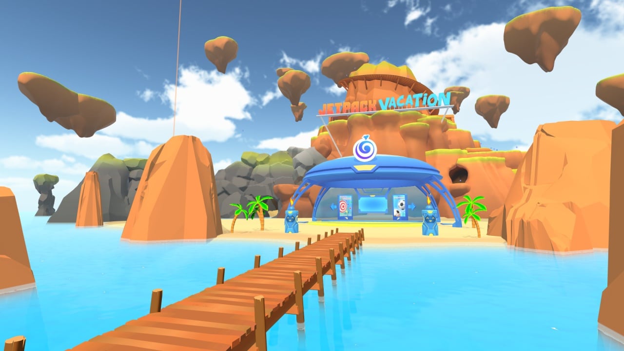 Jetpack Vacation позволяет геймерам отправиться в цифровые мини-игры, рассчитанные под очки виртуальной реальности. Основной процесс геймплея составляют динамичные полеты на реактивных ранцах, применяя для выполнения уровня разнообразные выстрелы с ракетниц. Главной задачей в прохождении становится выполнение условий, присутствующих в каждой миссии, соревнуясь против других участников. Протагонист получает возможность свободно перемещаться по карте, ускоряясь и меняя высоту в пространстве, используя джойстики.