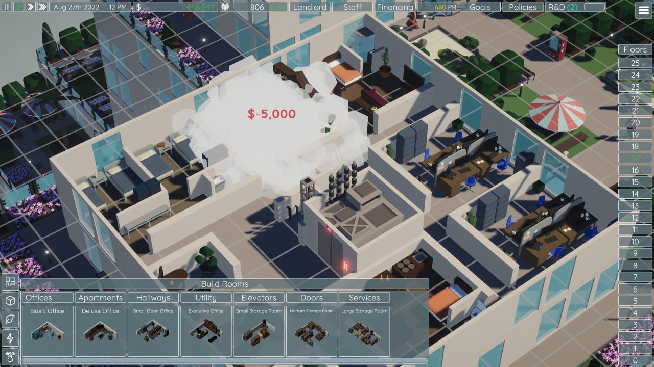 Строительные проекты в Highrise Mogul позволяют опробовать создание качественных строений, направленных на вертикальное развитие. Главным героем выступает магнат, желающий построить высокий небоскреб. Пользователь сможет проверить инженерные таланты, начиная процесс застройки с самого нуля. Придется установить пол, возвести стены, двери и разделить комнаты. Прокладывая электрические сети и размещая различные декорации, нужно продумывать логику здания, чтобы посетителям было удобно передвигаться, ощущая безопасность и уют внутри. Приходится управлять финансами, разумно распределяя средства на закупку материалов и производственных элементов.