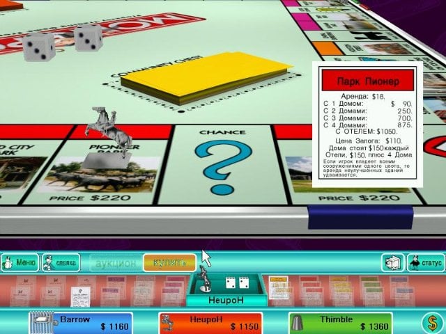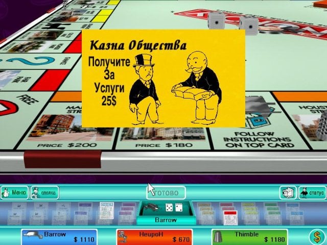 Монополия 3, как понятно из названия, является третьей по счету видеоигровой адаптацией популярной настолки. Проект позволяет играть вместе 2-6 людям за одним компьютером. Возможность устроить партию в онлайне тоже присутствует. Также можно соревноваться в одиночку, выбрав на роль соперников ботов.