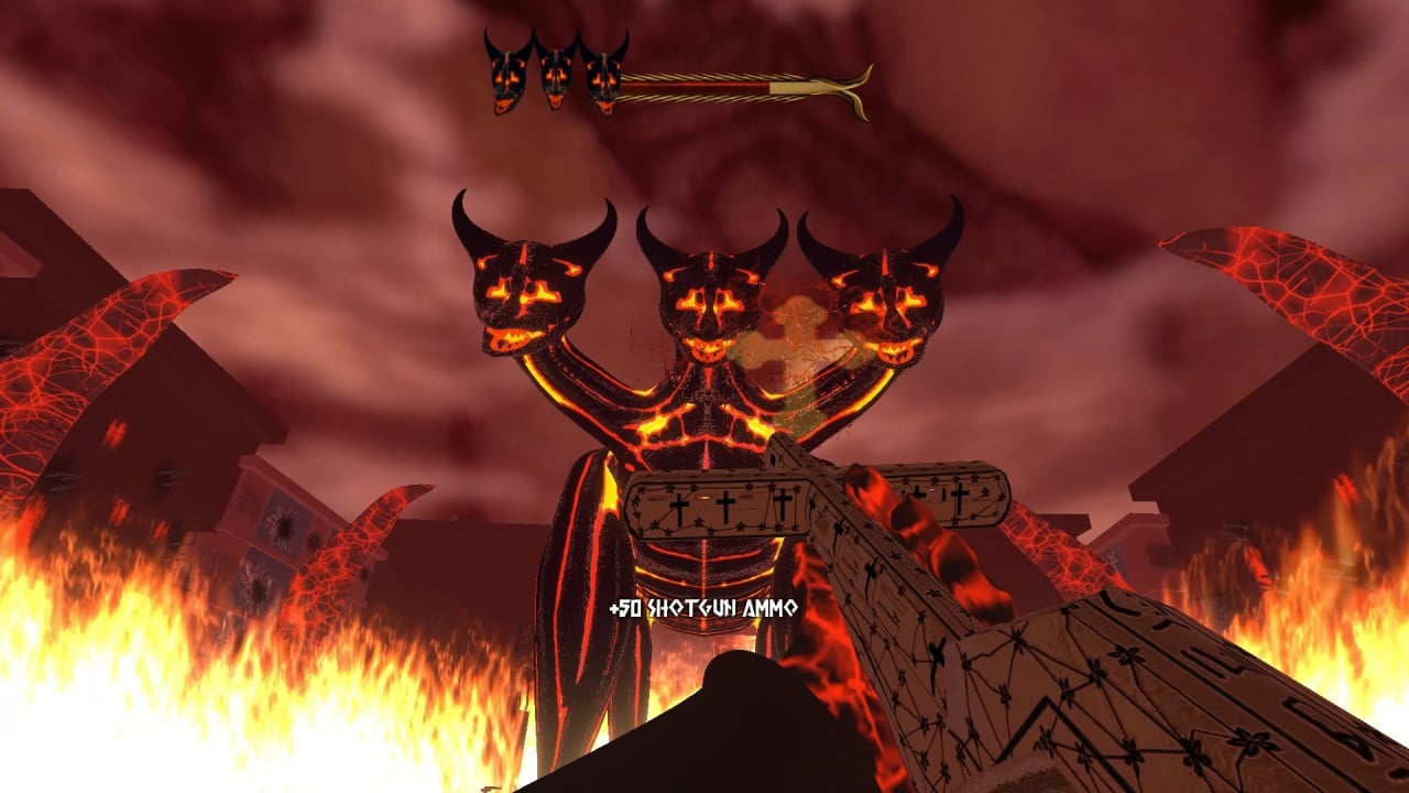 Игровой процесс напоминает видеоигры про Серьезного Сэма. Инди-тайтл предлагает быстрый и динамичный геймплей старой школы с небольшим влиянием современных шутеров. Пользователя запирают на больших картах-аренах и спускают на него со всех сторон толпы недругов. Есть 14 разновидностей врагов, включая ангелов и демонов. Также в наличии 11 крупных боссов. Присутствует кровь и мясо. В награду за особо жестокие убийства супостатов тут частично восстанавливают здоровье.