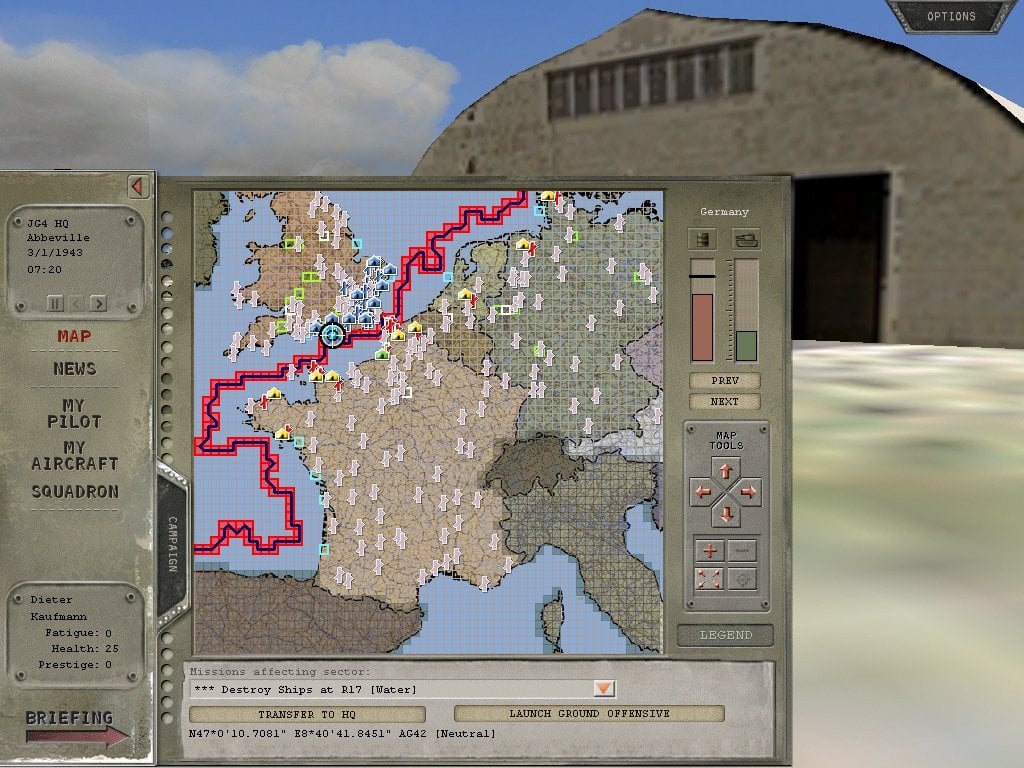 Например, играя за Германию в Microsoft Combat Flight Simulator 3: Battle for Europe, можно попытаться выиграть ключевые бои против союзников, чтобы не позволить им продвинуться дальше и укрепить свои позиции на территории Европы. Чтобы на собственном опыте понять, как это происходит, достаточно выбрать один из режимов (миссии или быстрый бой), после чего вступить в сражение за одну из сторон. В случае с миссиями все промежуточные задачи будут отображаться в верхней части экрана, и по ходу выполнения некоторые пункты просто выходят из списка. Из-за того, что это симулятор, основной акцент здесь делается на управлении летательным аппаратом. Многое зависит от исходных параметров самолета, поэтому если он изначально не обладает мощным двигателем, не стоит пытаться уйти от погони с участием более продвинутых агрегатов.
