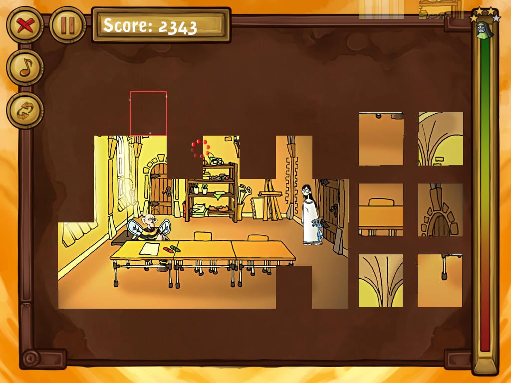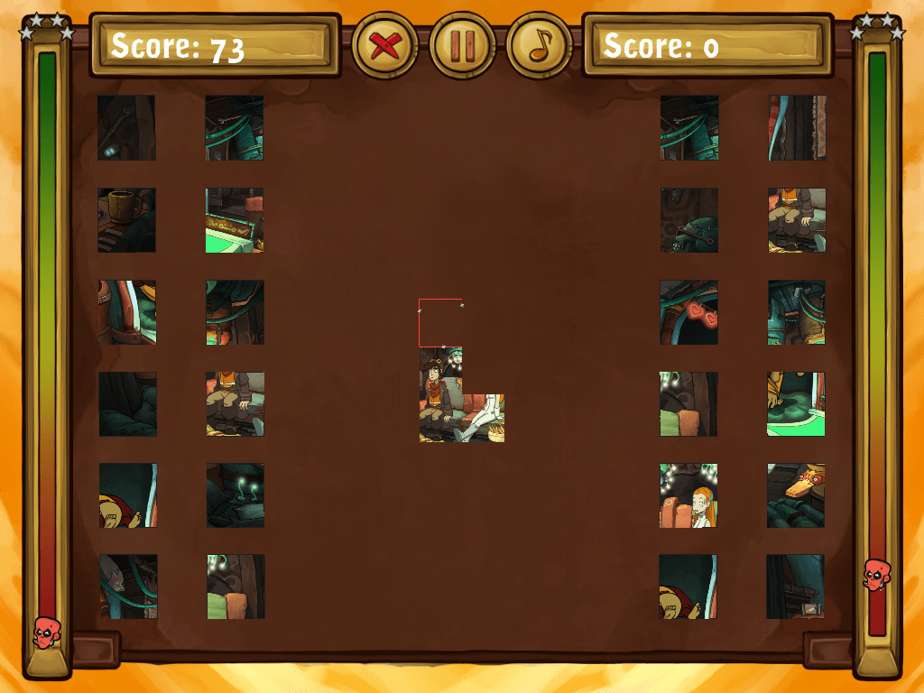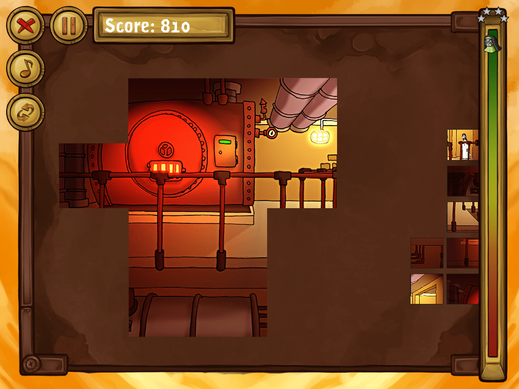 Каждый раз, сбор пазла в Deponia: The Puzzle проходит на отдельном поле. Все фрагменты находятся в правой части экрана, и для формирования картинки их нужно перетаскивать в центр. При этом, они далеко не всегда находятся в изначально правильном положении, и при необходимости их нужно будет перевернуть. По мере того, насколько успешным будет завершение каждого уровня, пользователь будет набирать очки. В конце, когда формируется итоговый счет, именно это количество идет в учет как личный рекорд, и при желании можно всегда вернуться к уже завершенному этапу, чтобы превзойти достижение. Немаловажно и то, что все происходит с учетом времени, поэтому нужно действовать быстро, ведь если пользователь не успеет завершить, задание будет провалено. А если он сможет справиться с задачей до того, как истечет отведенный срок, то сможет получить прибавку к уже накопленным очкам.