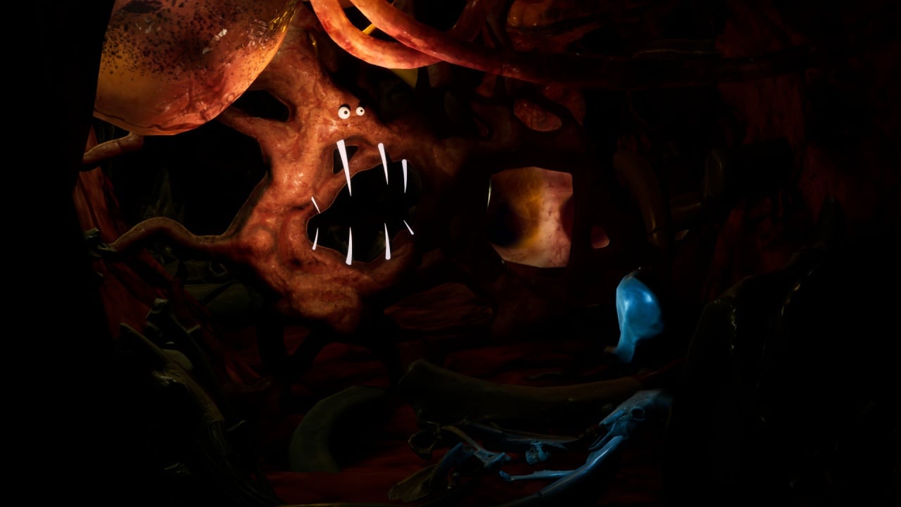 Scarenoid выделяется нетипичным визуальным стилем и атмосферой. Происходящее на экране напоминает сюрреалистичный мультфильм. А подача смешивает хоррор и комедию. Причем юмор тут довольно мрачный.