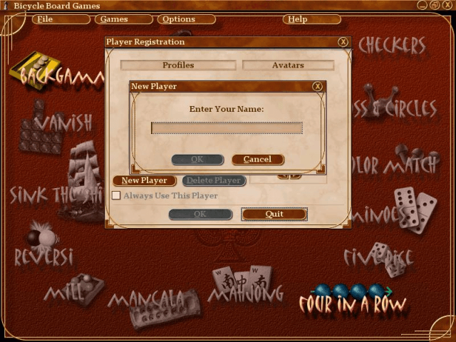 Microsoft Bicycle Board Games - сборник классических настолок, объединенных в одном паке. Все игры повторяют свои оригинальные настольные версии. Каждую игру можно запустить в индивидуальном порядке. Можно соревноваться в одиночку против искусственного интеллекта, либо же бросить вызов другу как за одним устройством, так и по локальной сети. Сборник настольных игр Microsoft Bicycle Board Games включает Шахматы, Нарды, Манкала, Реверси, Морской бой, Китайские Шашки, Домино, Majong и множество других.