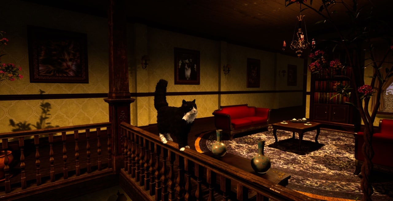 Игровой процесс строится на преодолении препятствий и решении головоломок. Поместье поделено на комнаты. Чтобы попасть в следующее помещение, нужно разобраться с задачками в текущем. Чаще всего всё сводится к тому, чтобы добыть ключ от двери каким-то нестандартным способом. Можно подбирать и другие вещи, но представитель семейства кошачьих способен за раз переносить только что-то одно. Сами загадки тут сложные, но логичные. Кроме решения пазлов можно выполнять второстепенные задания. Также здесь позволяют охотиться на крыс или ломать вазы и другие хрупкие предметы (окружение тут частично разрушаемое), сбрасывая их на пол ради веселья и получения достижений.