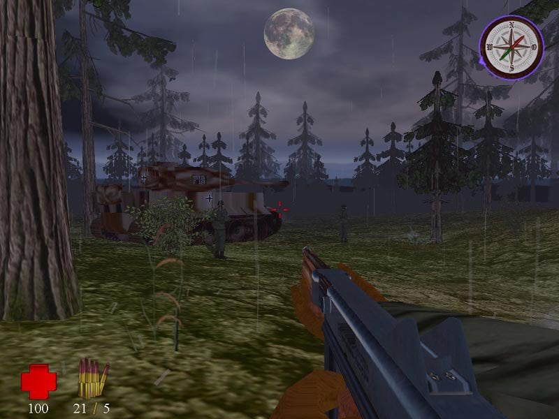 По сюжету немцы сбивают воздушное судно, в котором летел Питер Смит. Герой выпрыгнул с парашютом и приземлился прямо в тылу у нацистов. После этого протагонист занялся диверсиями. Ему доступен следующий арсенал: пистолет, автомат, гранаты, снайперская винтовка и противотанковое ружье. Иногда бойцу позволяют пострелять по летающим целям из зенитки. Музыка звучит только в меню и в отдельных игровых эпизодах. История подается через начальный и финальный ролики. Сам боец разговаривает довольно редко.