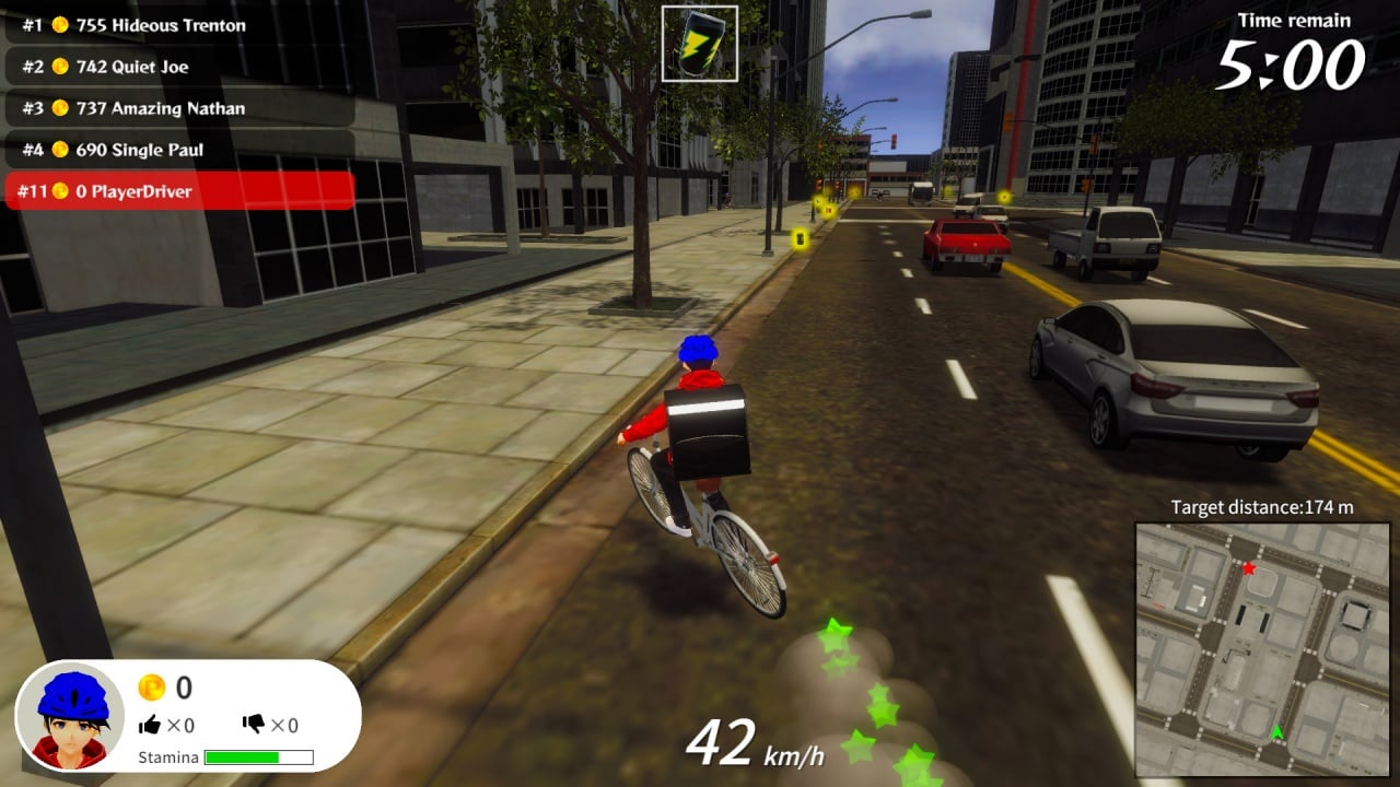 Подопечный обладает специальными способностями. Бонусы разбросаны на улице, как и деньги. Подобранные предметы помогут мешать соперникам. Большая часть способностей – вымышлена, позволяя отталкивать ближайших врагов воздухом, либо ускоряться за счет найденной ракеты. Чтобы выполнить заказ, понадобится остановиться на несколько секунд внутри желтого квадрата. На интерфейсе показано оставшееся время и мини-карта, где нарисованы другие участники и пути.