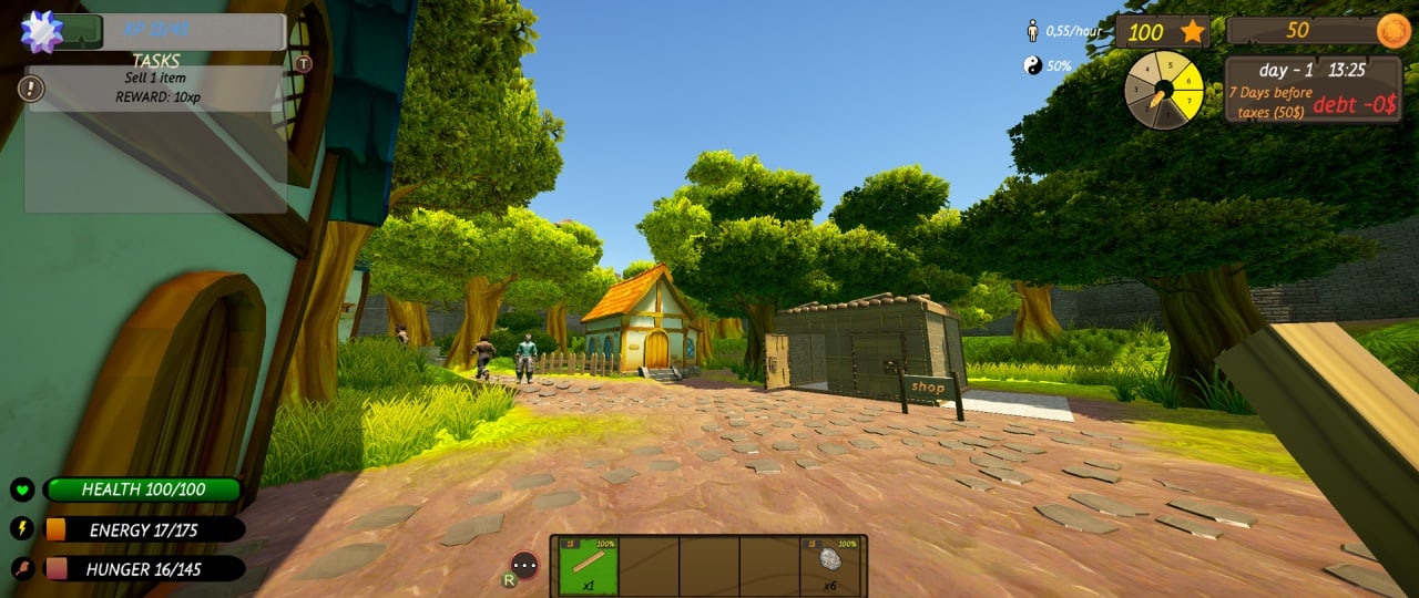В Medieval Shop Simulator игрок сам выбирает товары, которые отправятся на продажу. По скольку сеттингом для этого симулятора торговца выбрано средневековье, то и перечень доступных вещей будет соответствующий. Дерево, камень, овощи, оружие и прочие категории можно раздобыть на складе. Их количество ограничено, поэтому на первой распродаже нужно постараться заработать как можно больше, чтобы при закупке следующей партии иметь больше опций. Цена для каждой категории выставляется отдельно, и в зависимости от спроса можно также изменять этот параметр. Так как магазин, которым управляет геймер, расположен на торговой площади, рядом с ним будут и другие торговцы. Они могут торговать как вещами из одной категории, так и разнообразить ассортимент. Кроме того, если персонаж приобретает у кого-то новый продукт, он появляется на складе, откуда его можно заказывать в дальнейшем. Особенно стоит выделить систему крафта. С её помощью можно использовать уже имеющиеся предметы для создания более сложных и многосоставных товаров, которые в свою очередь будут иметь повышенную ценность.