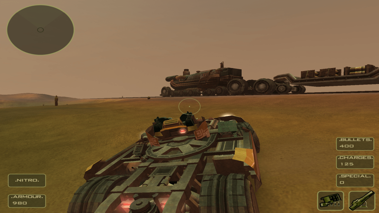 Основной механикой выступает наем напарников. Можно собрать свою банду, чтобы вместе уничтожать машины вражеских группировок. На выбор представлено десятки видов машин. Каждый транспорт имеет свои характеристики. Арсенал состоит из пулеметов, ракетных установок, огнеметов, минометов и т.п. Локациями выступают города, оазисы и места, полностью разрушенные войной. Действует реалистичная система повреждений транспорта.