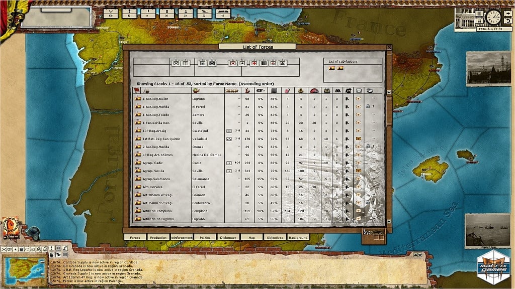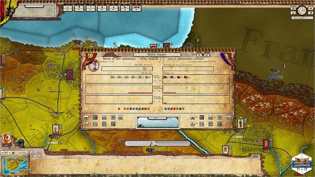Espana 1936 - пошаговая стратегия, опирающаяся на исторические факты. События развиваются в Испании 1936 года. Игрокам предстоит пройти знаменитые битвы, такие как сражения при Хараме, Гвадалахаре и Эбро. Необходимо взять на себя командование Интернациональными бригадами и Африканской армией. Каждая фракция имеет свои уникальные характеристики и способности, влияющие на игровой процесс.