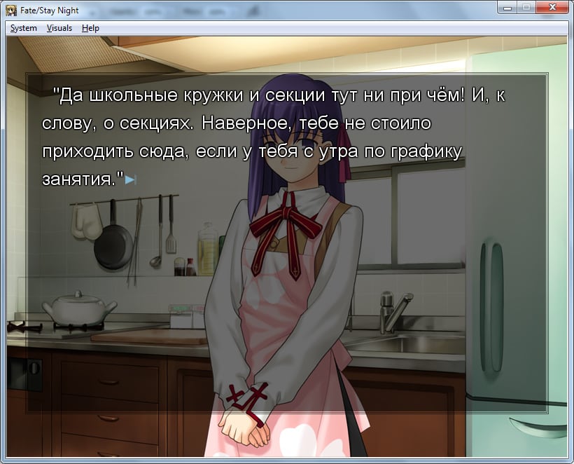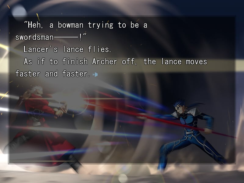 Fate/stay night - визуальная новелла по мотивам одноименного аниме-сериала Судьба Ночь Схватки. Геймплей выделяется повышенной степенью интерактивности. В основном игровой процесс протекает при помощи статичных двухмерных изображений. Игроки читают текст и выбирают реплики ответов. Решения приводят к различным сюжетным поворотом и последствиям.