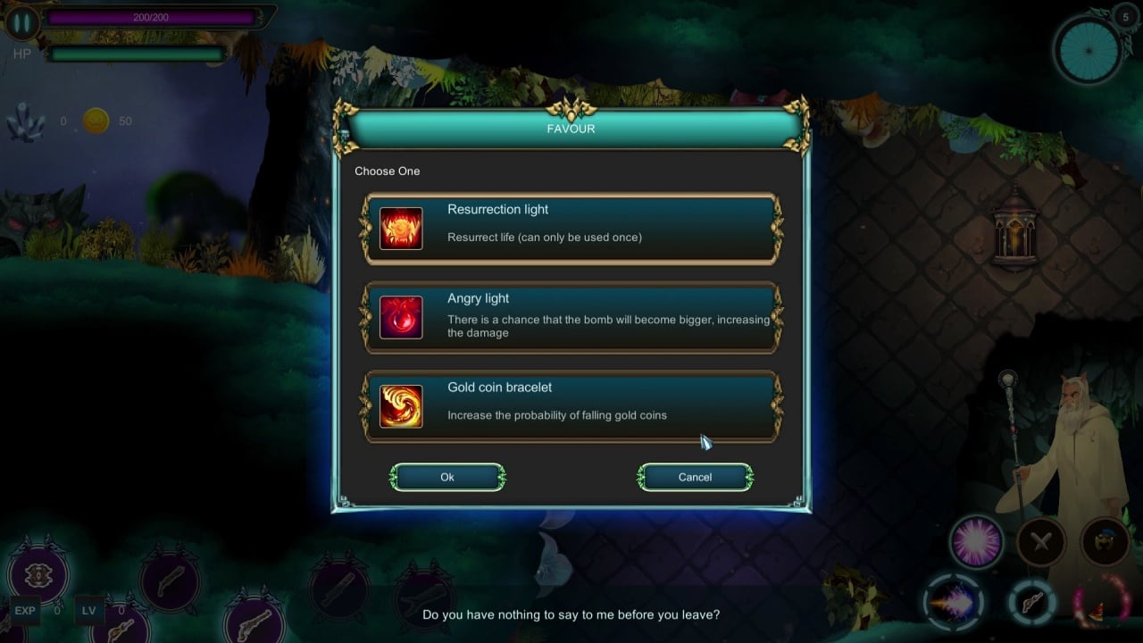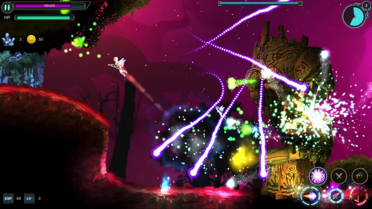 По мере продвижения героиня зарабатывает монетки и кристаллы. За золото можно купить у торговцев магические атаки. А минералы тратятся на приобретение нового оружия. Ещё в локации-хабе находится старейшина. У него позволяют брать на выбор одно из нескольких пассивных умений. Например: увеличение урона или повышение скорострельности на определенное количество процентов.