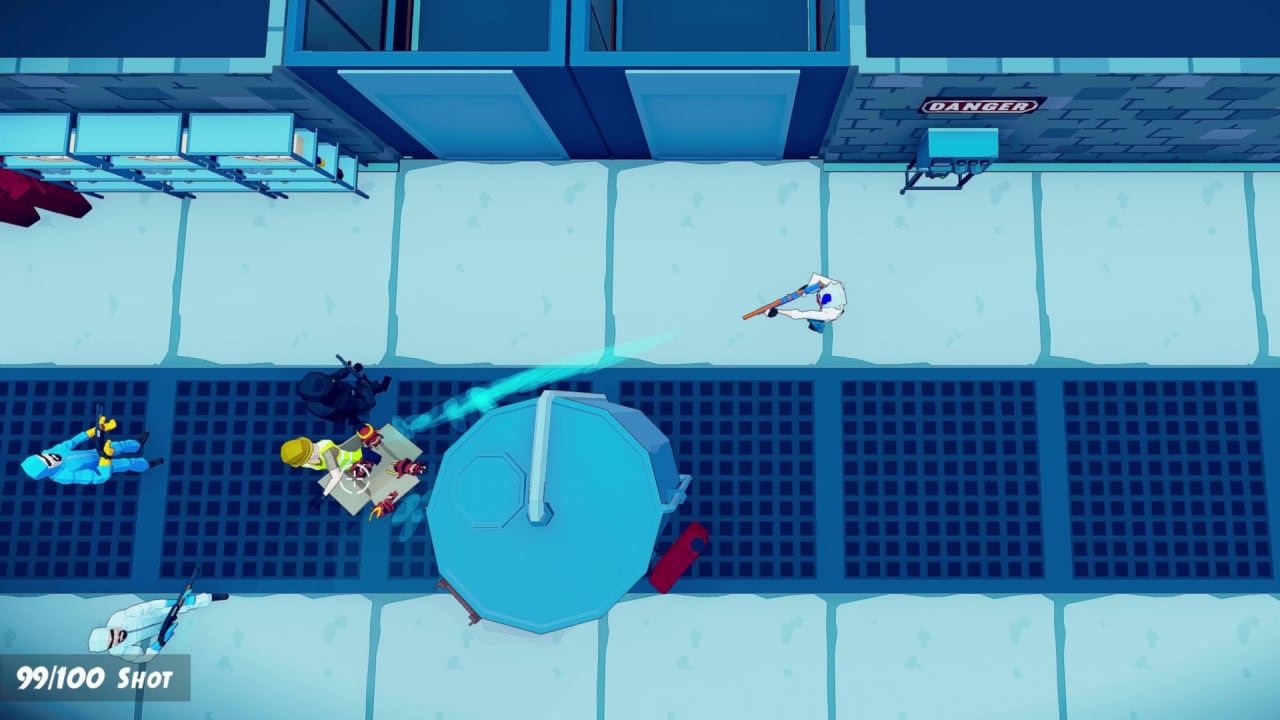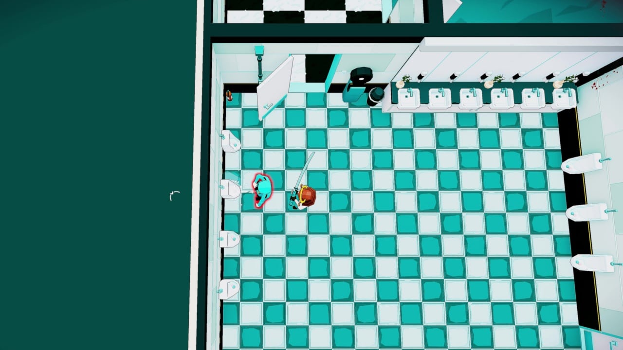 Геймплей напоминает Hotline Miami. Антигерой врывается в помещения и атакует врагов, пользуясь эффектом внезапности. Он умирает с одного удара или пули, враги – тоже. Можно отбрасывать и оглушать недругов, что стоят возле закрытых дверей. В PEOPLEDOWN даже маски есть. И тут они работают похожим образом: дают начальное вооружение, немного меняют модификаторы и т. п.